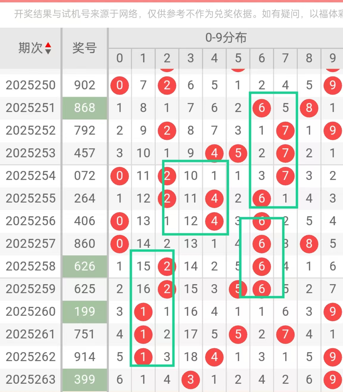 个位数字3的走势类似:近期个位以2、6、9为主,数字3的遗漏值已接近历史高位,根据“遗漏值回归”理论,其开出概率显著提升。