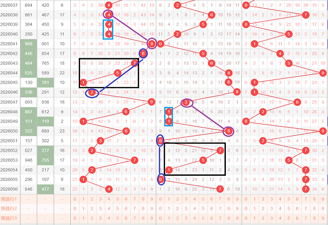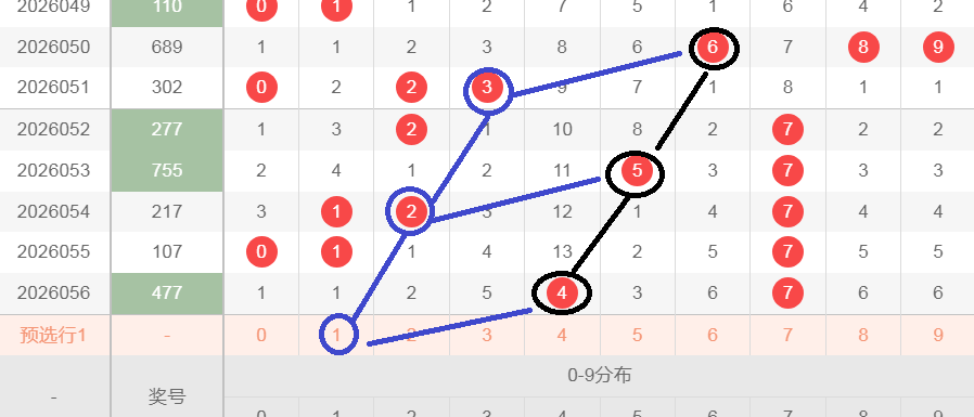这是一张小盘走势分析图,在小盘当中开出了黑颜色6,间隔两期开出了黑颜色5,然后再间隔两期开出了黑颜色4,形成了654顺子等距,在黑颜色6的下期先开出了蓝颜色3,在黑颜色5的下期开出了蓝颜色2,那么今天会不会在黑颜色4的下期开出蓝颜色1,形成蓝颜色321的顺子等距,文字表达不太清楚,大家可以观看上面的视频