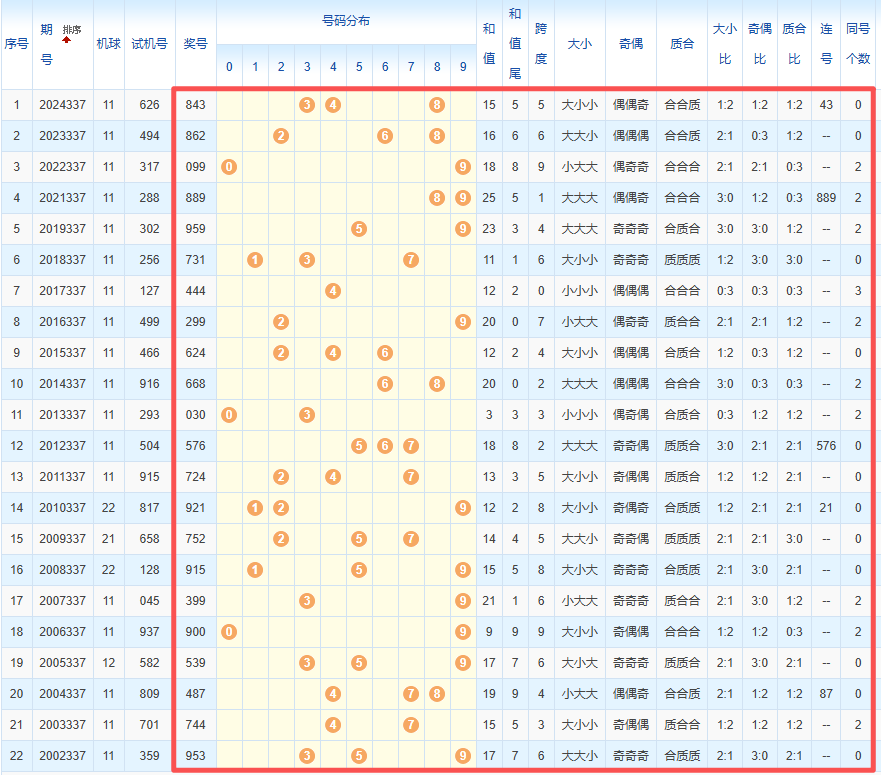 1、统计往年同期开奖号码