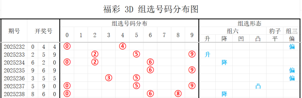 通过对走势的综合判断,现对福彩3D 2025239期分析如下: