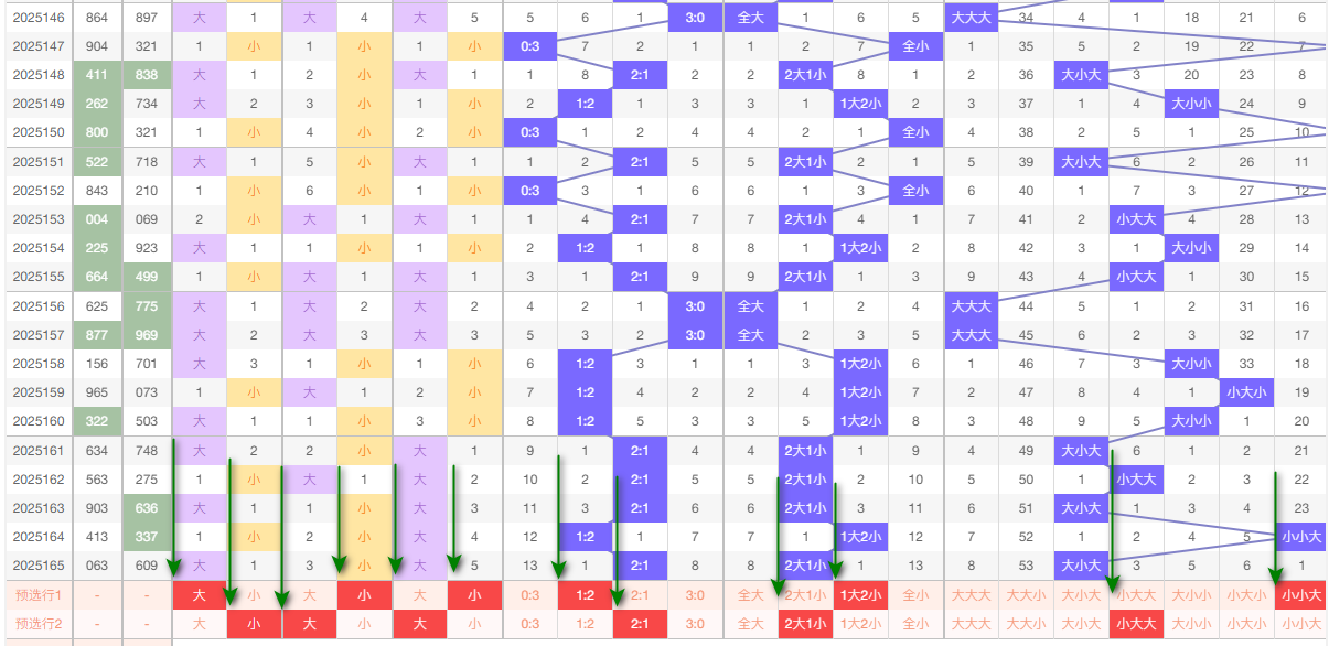 最近的5期当中个位大数出现的频次5次 小数出现0次 ,趋势平和 本期看好继续走小