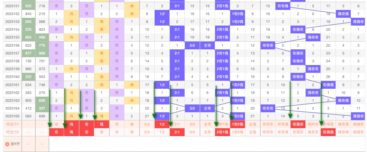 (二)、奇偶分析 奇数 13579 偶数 02468 在这5期 数据中 奇数出现 8次 偶数出现 7次 从昨天出号来看今天偶数要占优, 奇数还有继续出号趋势 看好 偶奇偶