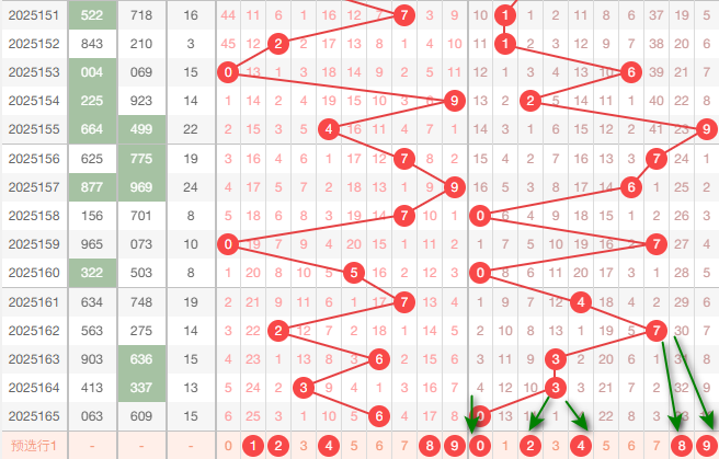 上期十位开出0,本区与上期的跨度为3,本期我们可以从上面走势图中看出选号的思路,本期十位推荐:02489