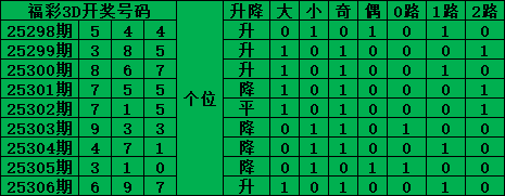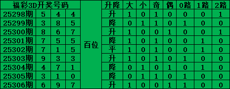 福彩3D是从0-9每期开出3个号码,截至2025306期三个位置最大遗漏的是36期个位的8号。
