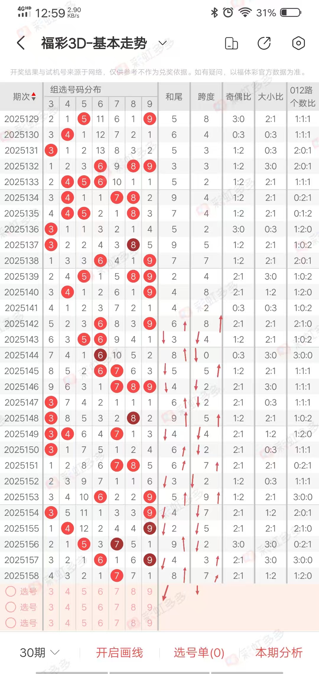 杀神福彩3D25159期规律走势分析-上期和值和值尾跨度分析正确