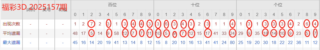 福彩3D2025157期分析分享(连中4期上期中6,7码)