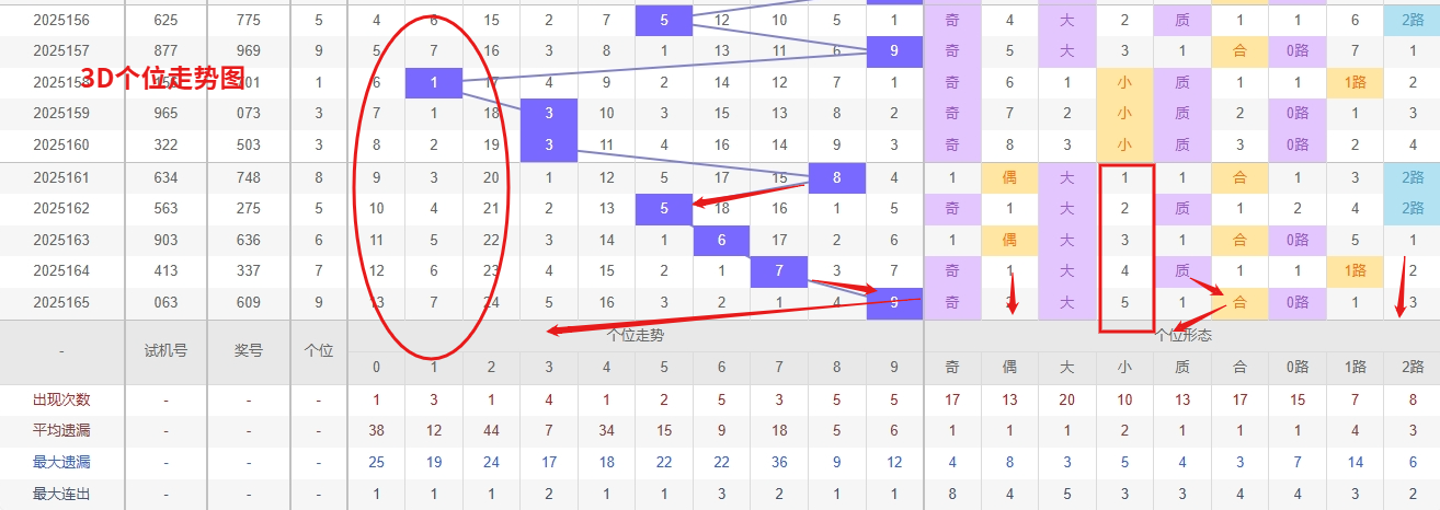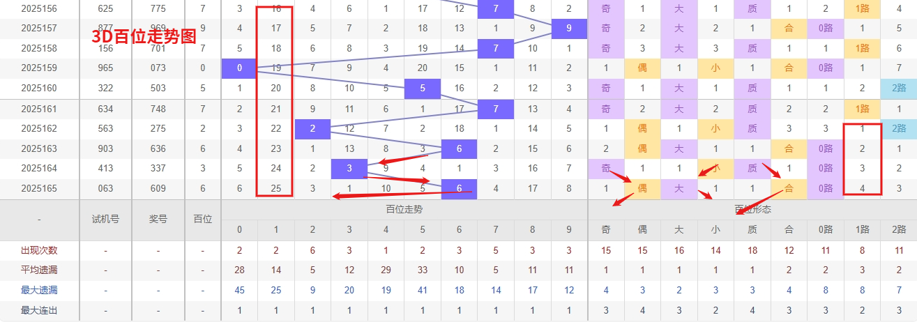 福彩3D个位分析:第2025165期个位开出号码9属于大奇数后端,从以上个位走势图中可以看出近100期的大小比约为47:53奇偶比约为54:46大小奇偶数据上有点差异有需求但不是太明显,不太好看这时就要借助连线走势和遗漏数据来帮助我们缩水号码。上期个位落号“9”大奇数0路号码球,号码开出了2振幅,连续多期的大振必被小振幅取代幅符合我们的预期,那么本期我们在个位考虑振幅走势走前依然要转变思路考虑大振幅,具体考虑(2-5)个振幅是我们主要的方向,那么在对个位落号情况进行系统的分析时我们可以明显的看到个位号码走势呈现大范围震荡,尤其是在号码的落位特点上表现的尤为突出,那么本期我们在个位分析时就要注意号码的风险,避免出现踏空。近期3D个位走势呈现冷热分化,0和2持续低温,其中0已多期未出,回补需求较强,可关注其触底反弹信号;2同样处于冷态,需防范突然解冻的可能。而热号8近期表现强势,多次开出形成热态趋势,需重点防守其重复或斜连形态。采取"冷热结合"的投注策略,冷号侧重0、2的回补机会,热号追踪8的延续走势,同时留意温号3、5可能出现的过渡形态,因此福彩3D第2025166期个位看好02578。本文由一起彩钱是生命动力所著,请勿转载