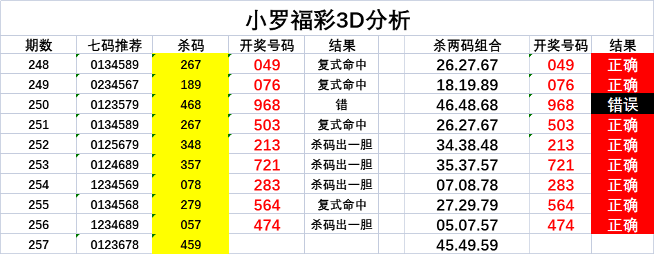 福彩3D第257期小罗分析