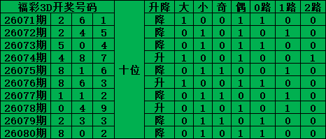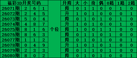 福彩3D第26081期号码分析推荐