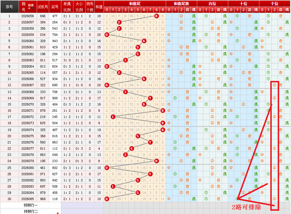观察各位置奇偶开出趋势,本期选择奇数1-2个。