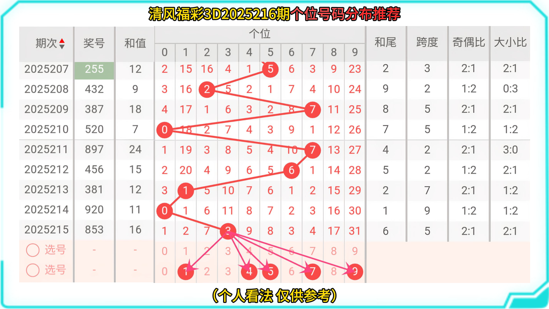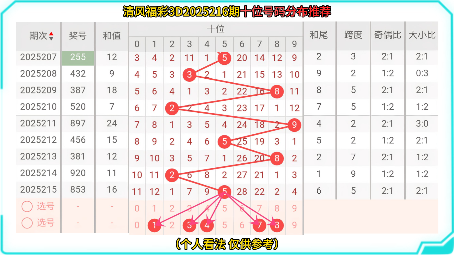再让我们来看一下福彩2025216期的杀号与胆码分析: