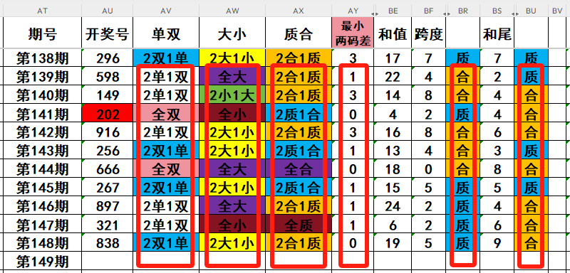 3,最近10天当中,两质一合开出3次,两合一质开出5次,全质数开出1次,全合数开出1次。