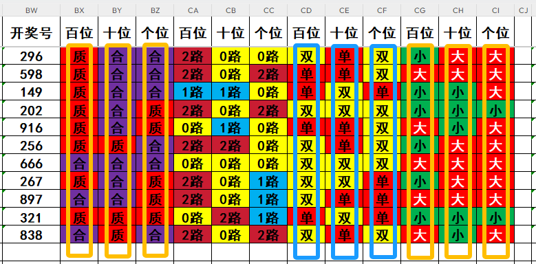 2,目前开奖号十位号码球11天当中,质数(12357)开出了3次,合数(04689)开出了8次,本期重点关注开奖号十位号码球质数的回补!