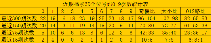 个位分析:最近300期奖号由冷到热表现为:321,225,1926,429,0833,634,735,538次,该位号码奇偶比为146:154,大小比为166:134012路比为114:90:96
