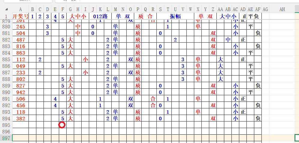 如上图56,大中小分析,中号3456出胆码,最低1个胆码,重点34