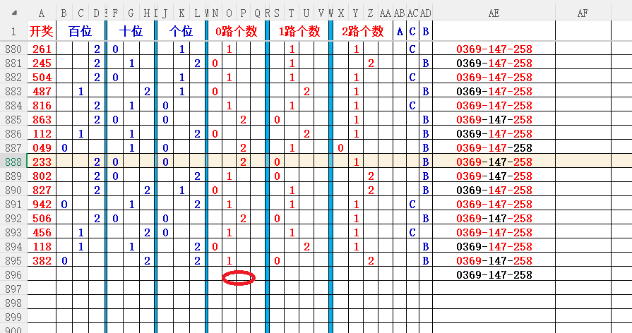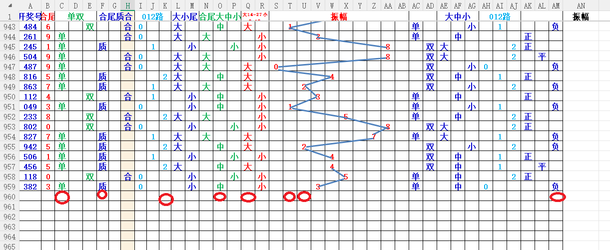 如上图2,012路分析01路尾走比较好,关注0369147尾;