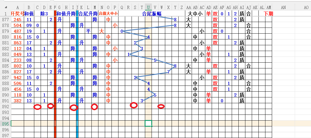 和尾:开奖号码和值的个位数,范围为0-9。示例:和值15的和尾为5。