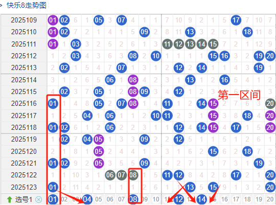 上期一区开4奖号(01.13.15.20)上期回顾一区开4个奖号一区间的奖号在上期呈现了递减的现象本期的号码应该变动能呈现小浮动的奖号变动趋势,本期先来看号码01具有一定的间歇性。偶尔会连续开出,比如有时会间隔 3 到5期就再次出现,也有时会间隔多期,整体出现频率较好,走势相对很平稳,号码08活跃度近期较好。有一定的间歇性,如在之前的某些期数中有连续开出的情况,整体走势有一定的波动性,有明显的冷热趋势变化,出现的频次比较稳定.号码12.活跃度相对较热,有明显的连续出现态势,偶尔间隔多期会出现一次整体表现较热出现的频次比较稳定。