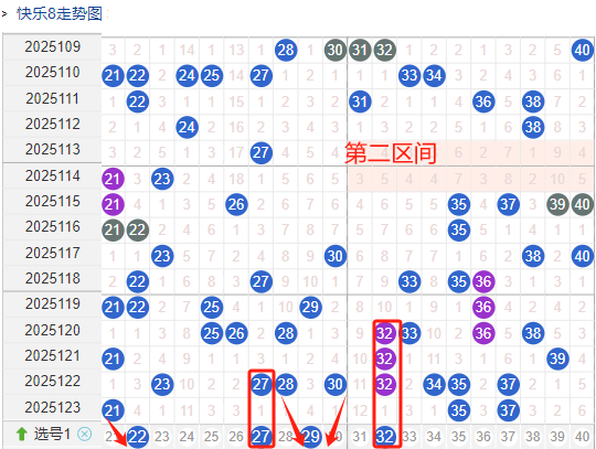 上期二区开出3个奖号(21.35.37)上期回顾二区开出了3个奖号二区间在上期落位同比前期的话呈现了一个递减的趋势,先来看本期号码22整体活跃度较热。在近 30 期里有一定的间歇性出现,不是每期都开,整体走势近期比较热。号码27近期热度较稳定,间隔性还算可以,偶尔间隔多期就会再次开出,说明其在当前阶段活跃度较温热注意防守。号码32近期活跃度较温冷,有一定的间歇性,整体走势相对还算平稳有特别明显的冷热趋势变化,号码29近30期内活跃度较冷,没有明显的连续出现形态走势,通常间隔几期会出现一次,偶尔也会遗漏多期整体表现比较温。