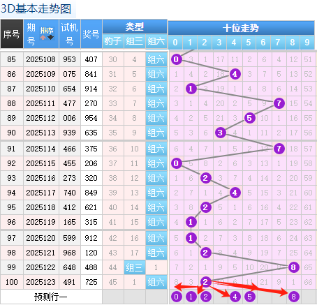 上期的3D个位开5号球,上期开出的是组六按照形态的话本期打组六小防组三,上期的5号球的落位是个位上的小号码的一个常搭配的落位走势,本期先来看0号球在个位还是有机会走出拉拽的一个概率的,9号球是上期5号球的一个分边的大号码的形态趋势这个位置也是很好看的落位点,然后看8号球的要注意要是走出3跨度的形态的话这里的位置还是很好看的也是一个拉拽的形态要是这里的不看好的话就防守9号球走一个错位的落位点。