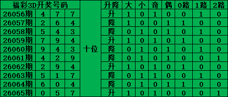 福彩3D是从0-9每期开出3个号码,截至2026065期三个位置最大遗漏的是43期的:个位的8号。