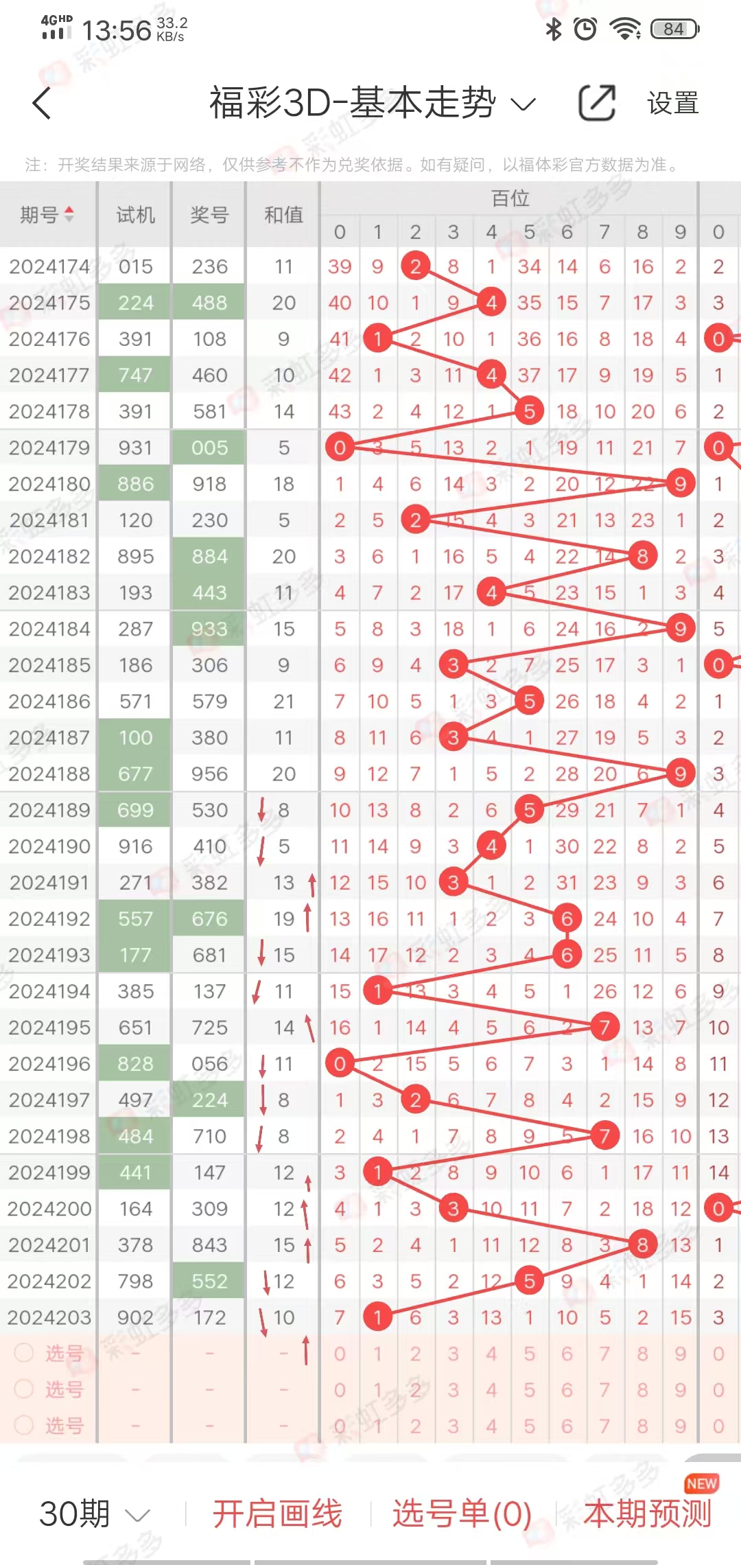 上期和值16,上升0点。