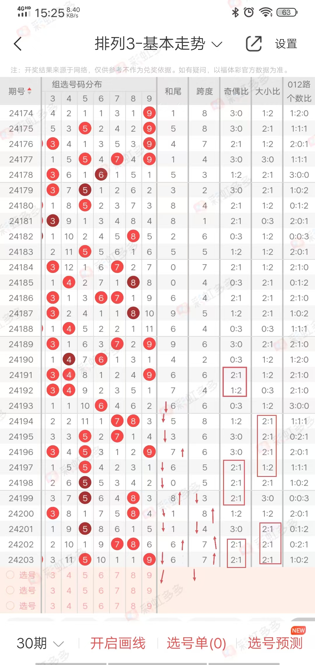 以上所有过滤条件并没有每期都是正确的,都是依靠各种数据环环相扣,总结出来的,我们在参考的时候,要抓住重点,比如和值小,大小1:2概率占大,比如跨度小,胆定小,那么789出现概率就小,9完全可以排除。当奇偶比或者大小比出现三期连出,第四期,很大概率是坑,就少往里钻。