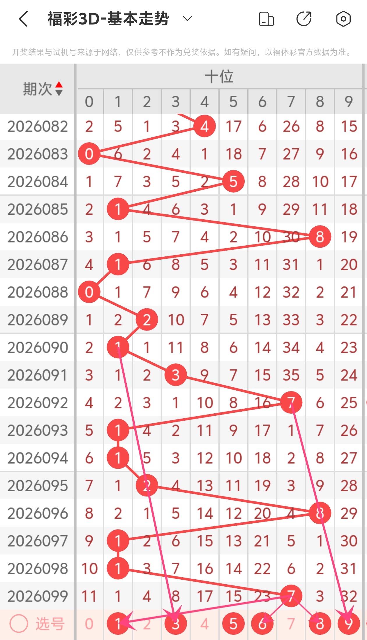 下面是福彩3D的十位走势图分析