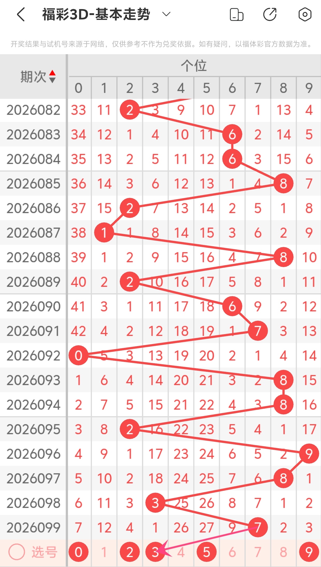 下面是福彩3D的个位走势图分析