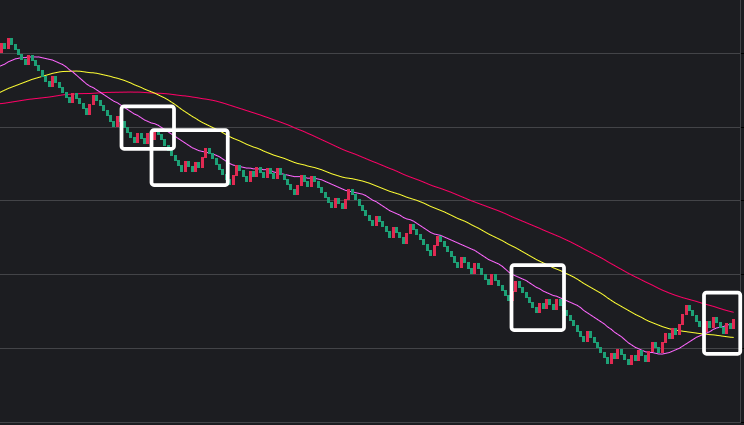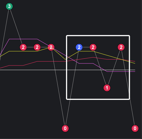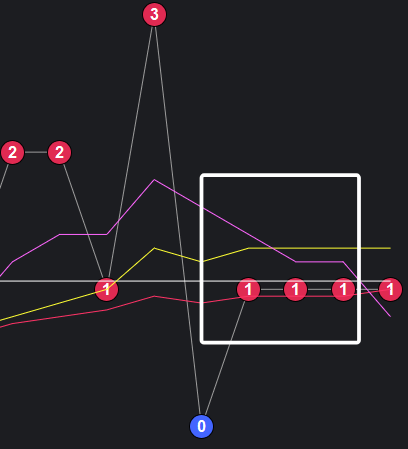 可以看到一些规律,在粉框中,如果一致,那么接下来这些跨度也会出。