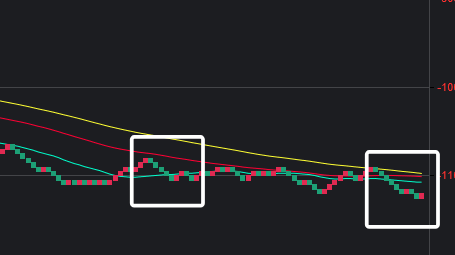 可以看到一些规律,在粉框中,如果一致,那么接下来这些跨度也会出。