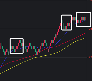 可以看到一些规律,在粉框中,如果一致,那么接下来这些跨度也会出。