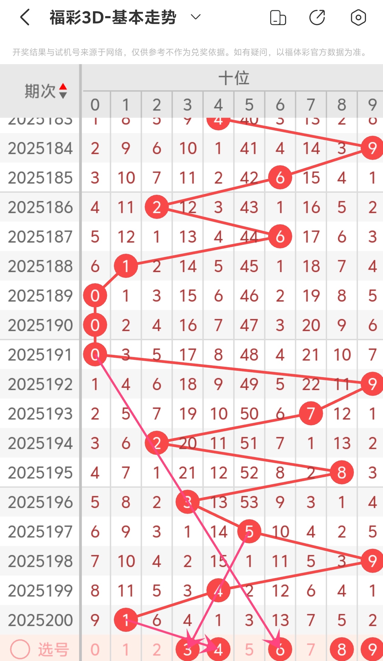 上期百位开出0,本区与上期的跨度为9,本期我们可以从上面走势图中看出选号的思路,0为重码,1为分边走势跨度为一,7为斜连走势跨度为七,9为隔期回补走势跨九,综合以上分析,本期百位推荐:01679