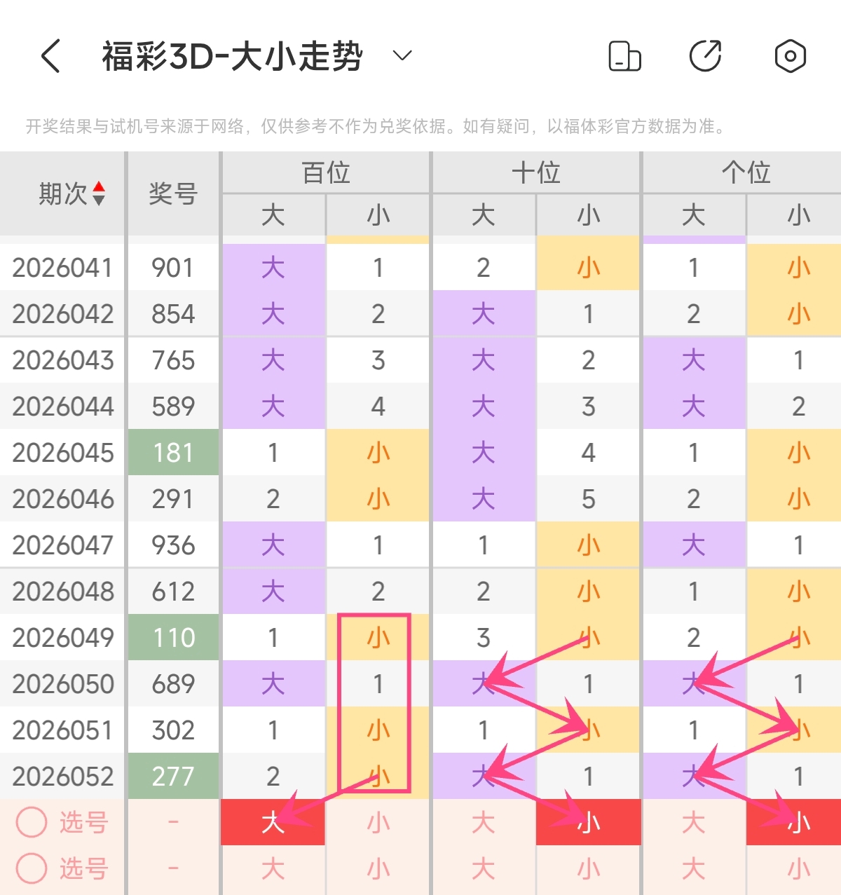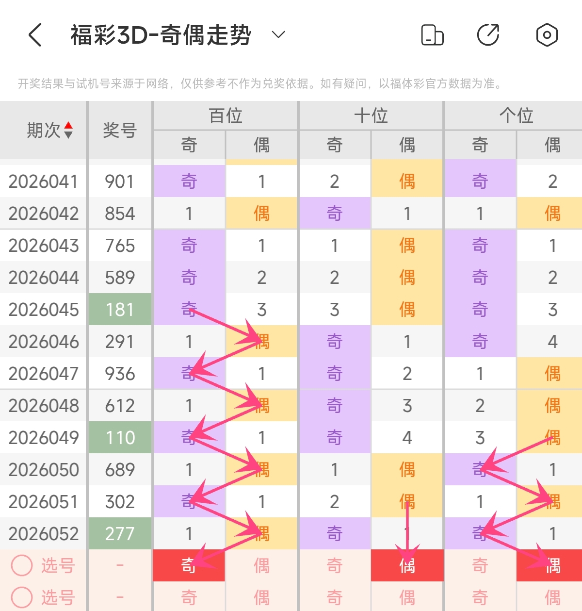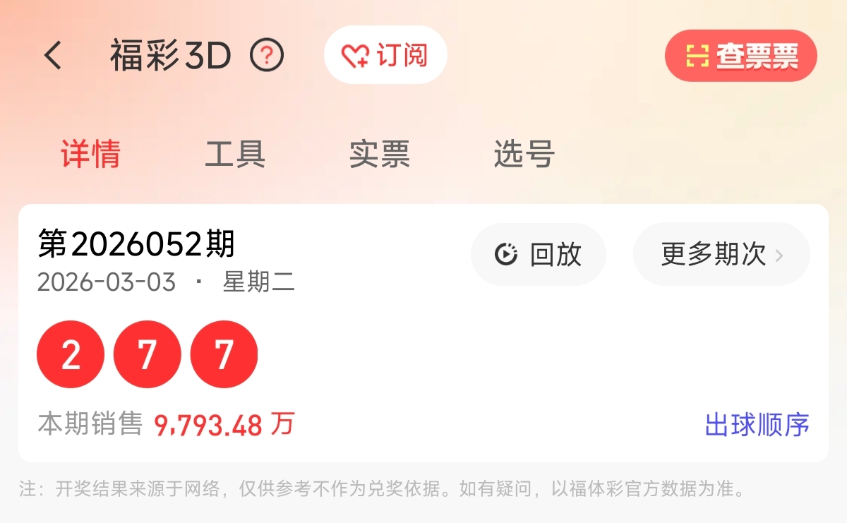 首先让我们回顾一下上期福彩3D第2026052期开奖号码为277,为组三形态,大小比为2:1,奇偶比为2:1,跨度为5,和值为16。