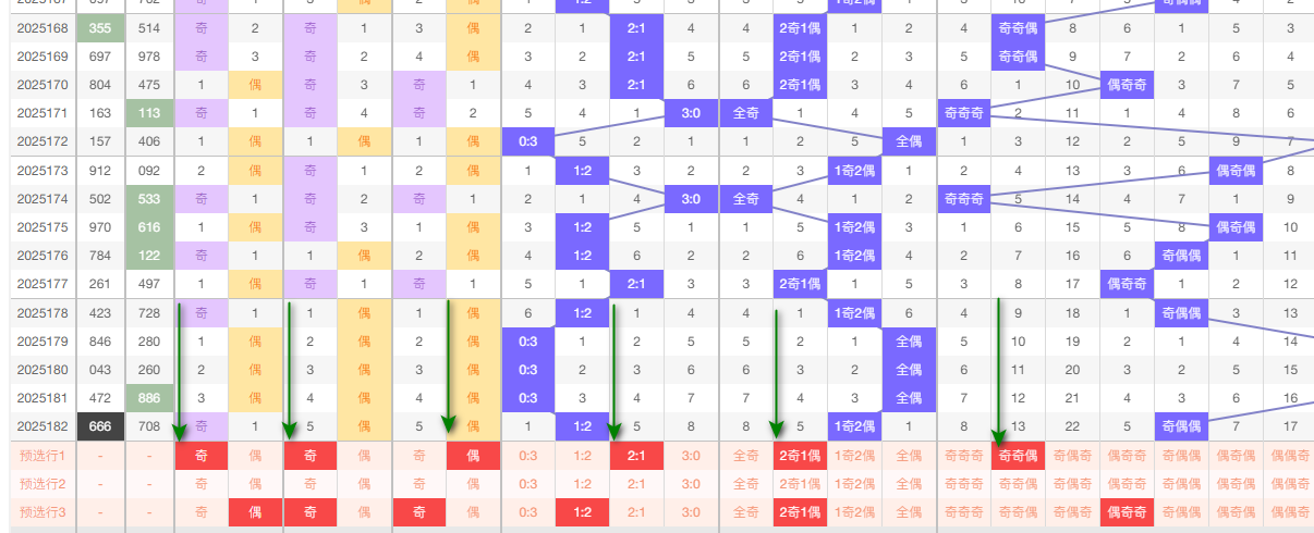 (二)、奇偶分析 奇数 13579 偶数 02468 在这5期 数据中 奇数出现 2次 偶数出现 13次 从昨天出号来看偶数占优, 本期看好奇数有号回补 看好 奇奇偶 奇偶奇