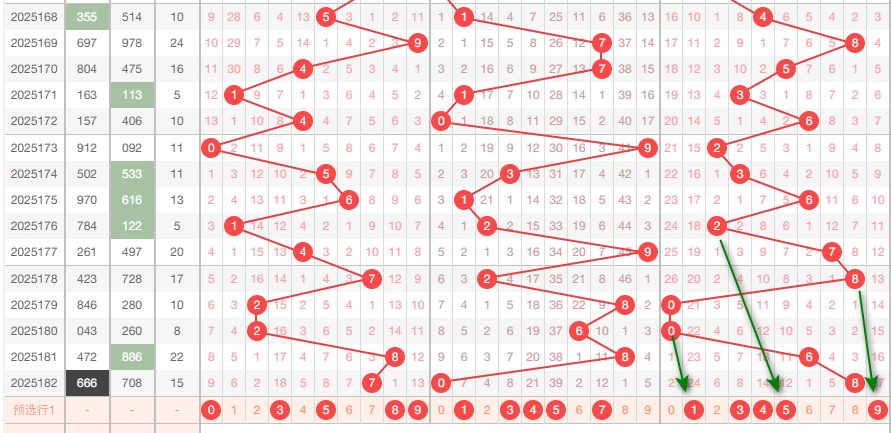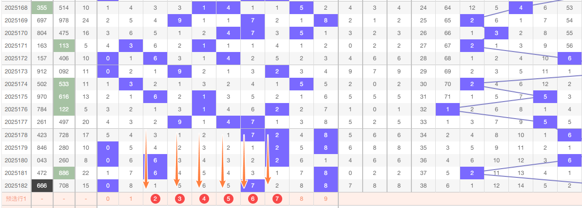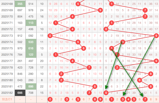上期百位开出7,本区与上期的跨度为1,本期我们可以从上面走势图中看出选号的思路,本期百位推荐关注:03589