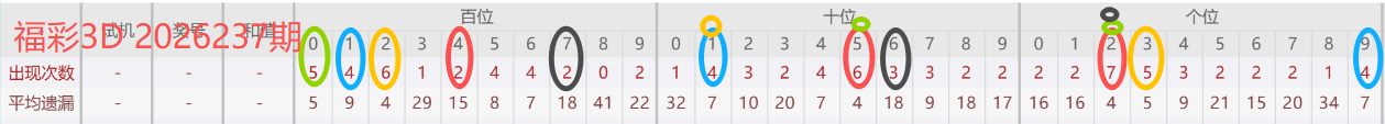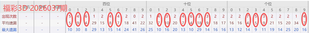 2026035期开奖号码213,我们可以看出近30期百位2出现6次(较036期减一),十位1出现4次,个位3出现5次。