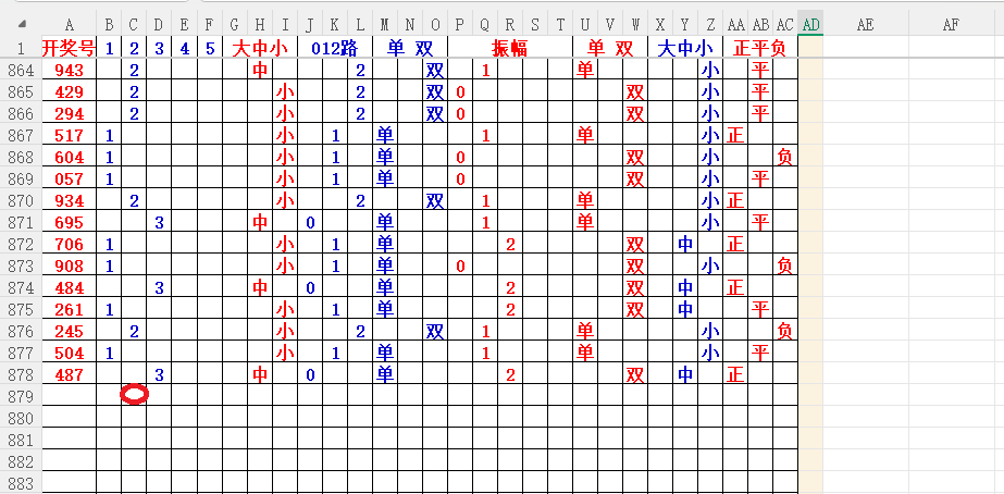 回顾074期:开奖号:487,均值:6,和值:19 跨度:4跨,大小比例2:1,单双比例1:2 012路:0:2:1
