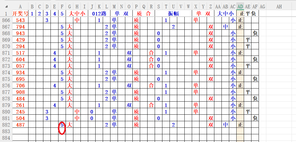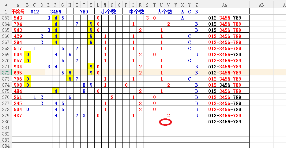 如上图56,大中小分析,中号3456出胆码,最低1个胆码,重点34