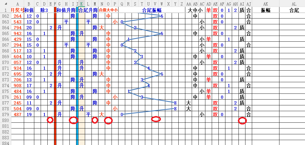 如上图3,和值升降平分析,和值升概率大,小于19和值