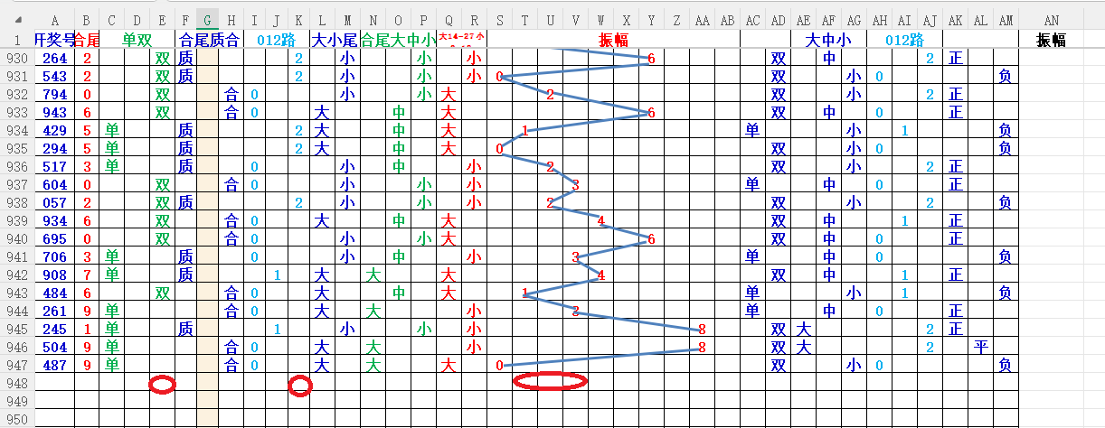 如上图56,012路分析。0369路号出胆,039中出,重点39胆码