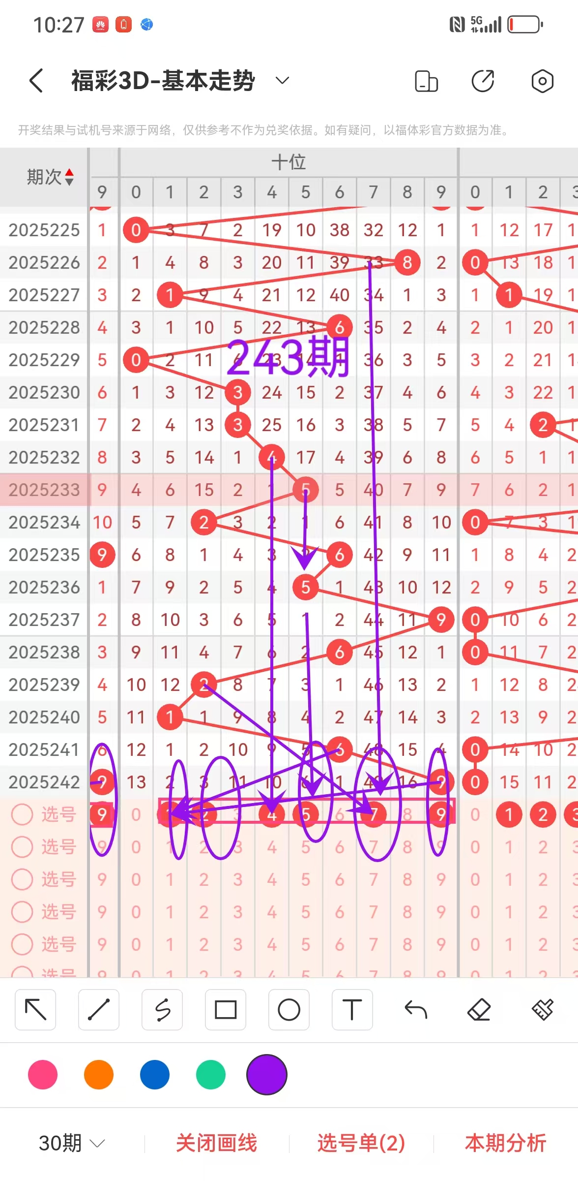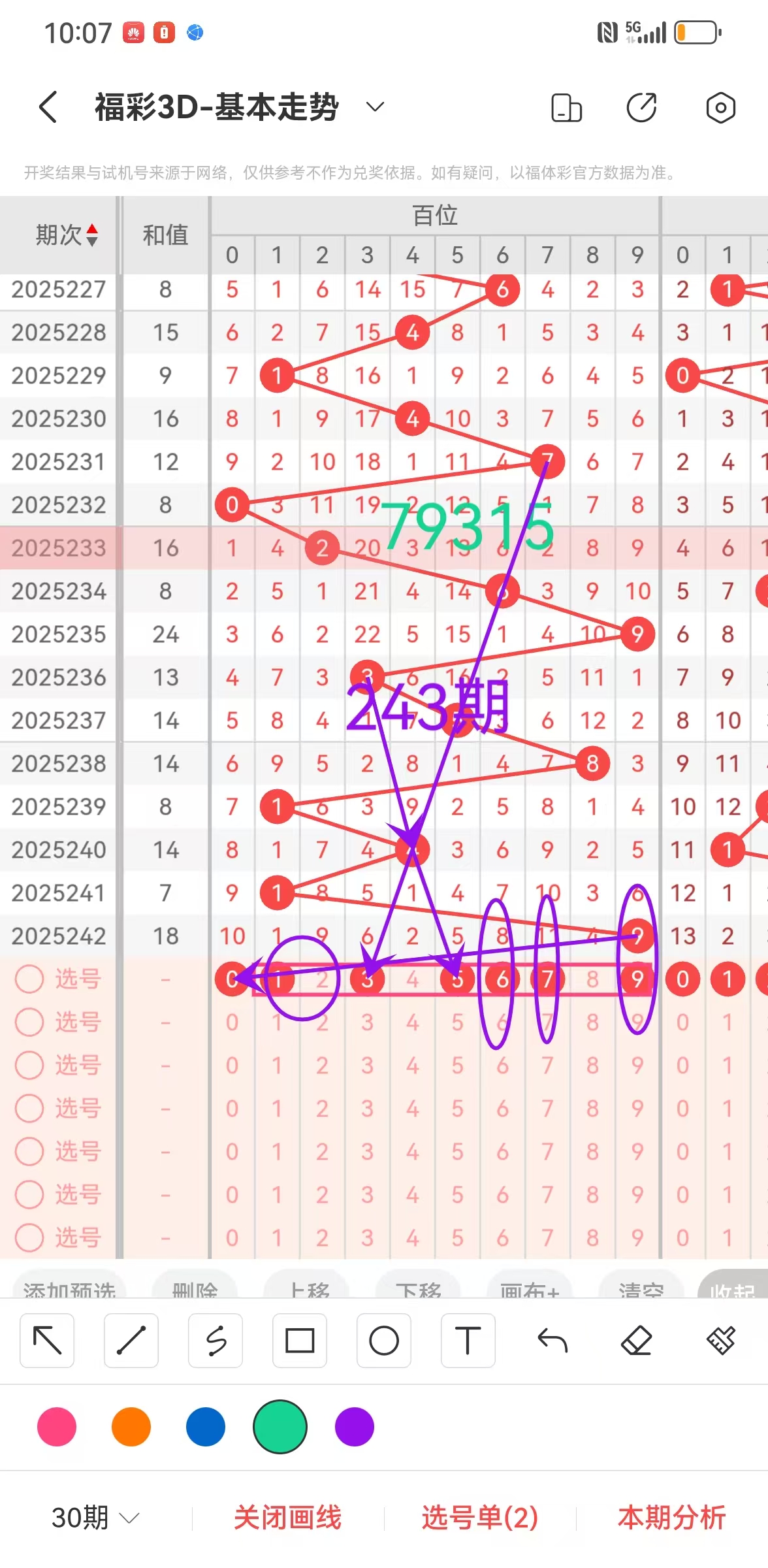 1、福彩3D第243期百位分析如下图: