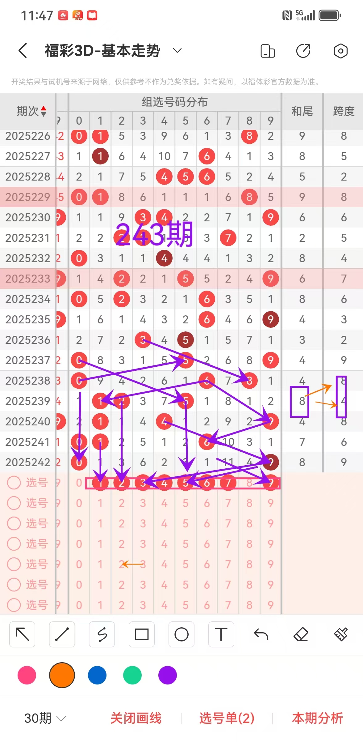 以上分析数据为:福彩3D第243期,啤酒哥本人推理和18年购彩经验所得,助力您选号