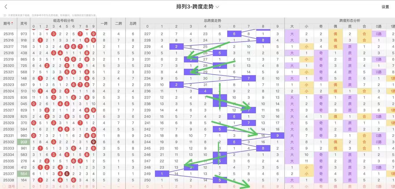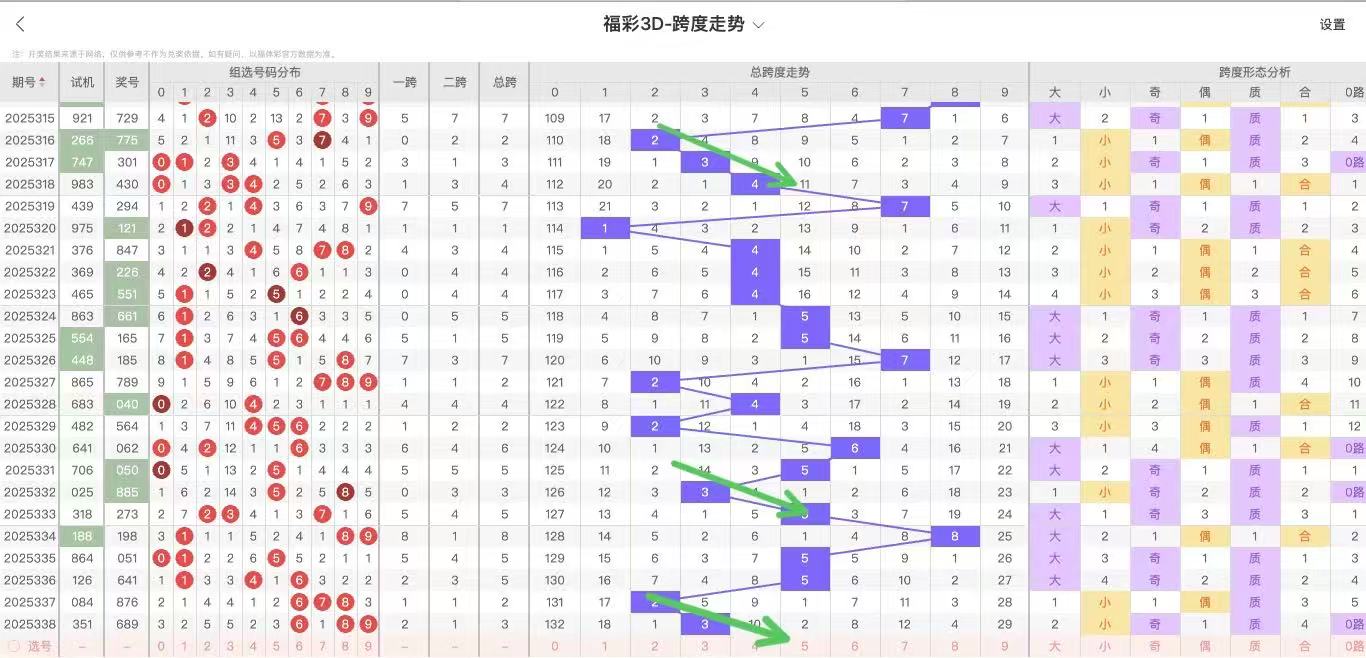 2025339期福彩3D跨度走势图如下:上期开出跨度3,而据观察近五期跨度大小走势为:大大大小小