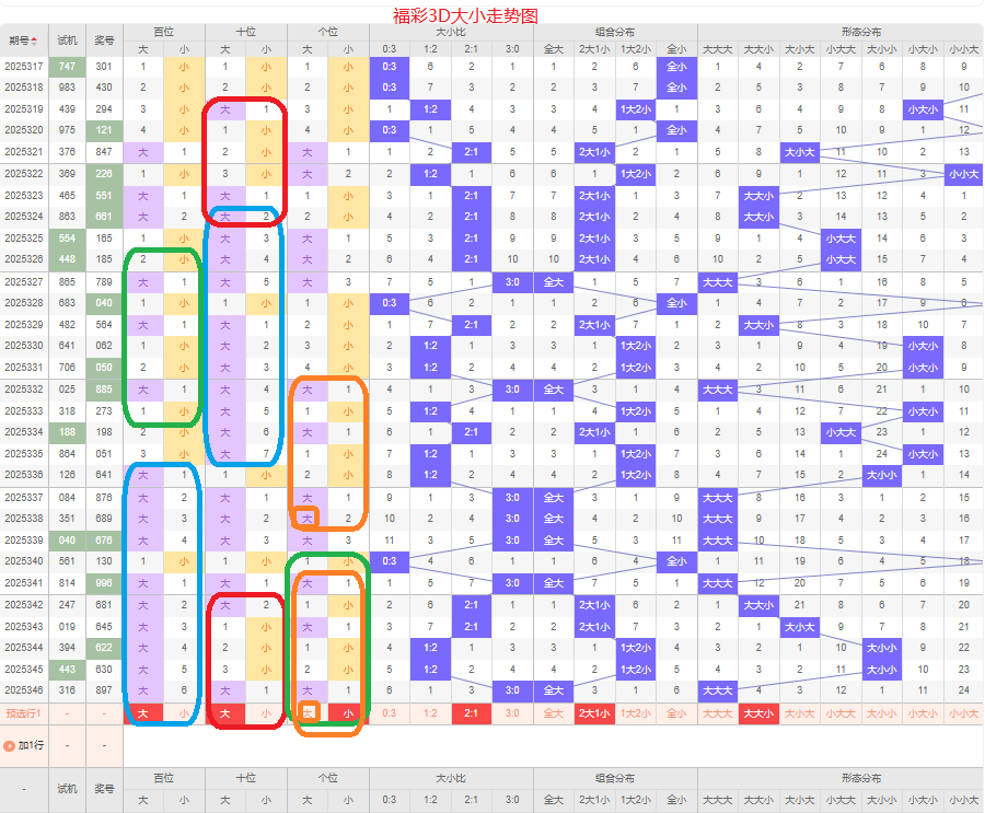 个位近期上下期跨度相对较大,侧重小号码,侧重奇数的号码,侧重0路和2路的号码,侧重号码03456。