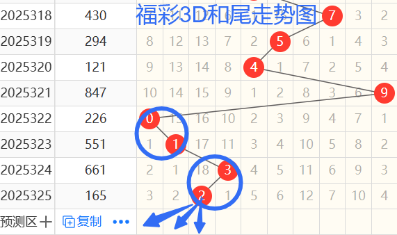1)我们来看和尾,以321期——325期为例,如图们依次是90132和尾,按照012路排序是00102路和尾,后面两期不是同路,今天就是2路0路的和尾,为什么这么讲呢,这个是个大概率的问题,也是根据长期的研究规律定的,准确率相当高,我定了2 0路的和尾,也就是2580369和尾,那么我们再来看和值,按照和值除3余数的话,可以分为余0 1 2路. 那么我们来看321期和值19余1,322期和值10余1,323期和值11余2,324期和值13余1,325期和值12余0,那么本期看和值看余1余0,根据上面的和尾那么就只有 10 13 16 19 20 12 15 18防11 和值