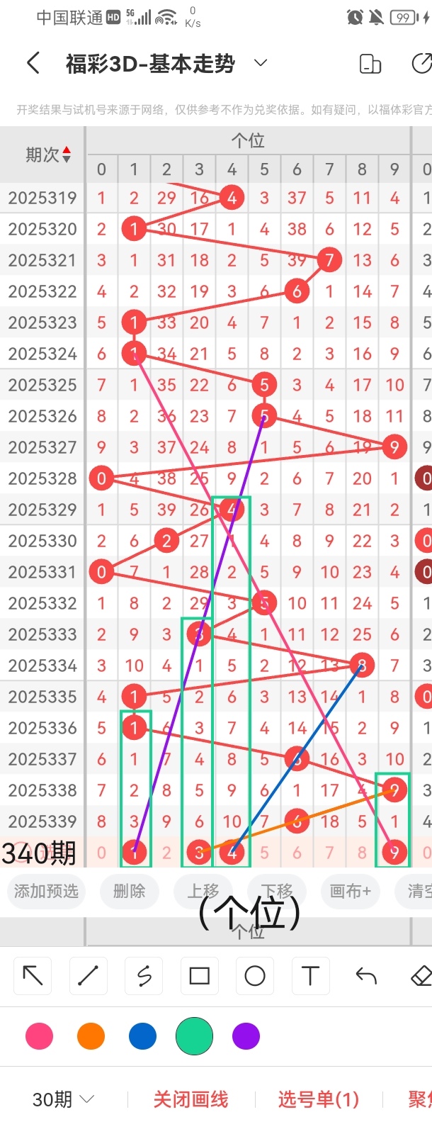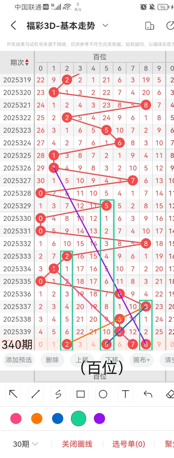 通过以上对上期的简单回顾,下面进入2025340期(下面简称本期)的选号分析:
