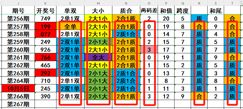 福彩3D第267期数据分析及胆码分享 2024-10-07 13:37:46 大家好,我是荒三帝丶。上期福彩3D第266期开奖390,形态组六,跨度9,和值12,和尾2,最小两码差3,两单一双,两小一大,开奖号为0路0路0路组合,奇数
