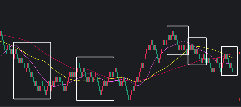 可以看到一些规律,在粉框中,如果一致,那么接下来这些跨度也会出。