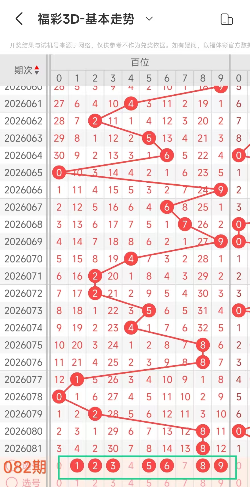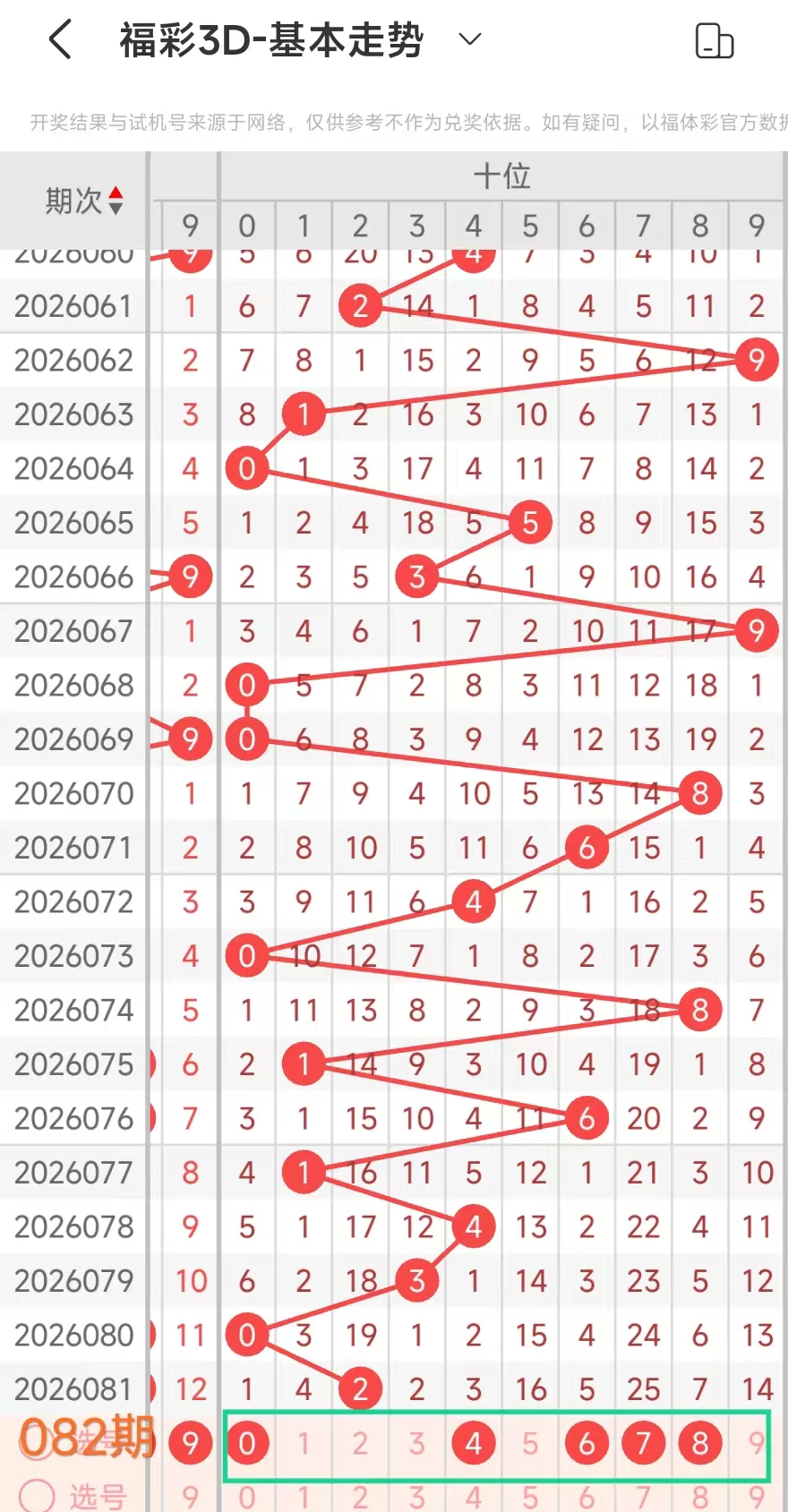2、当十位开出2后下期开出:30797609,经统计0号出2次、1号出现0次、2号出现0次、3号出现1次、4号出现0次、5号出0次、6号出现1次、7号出现2次、8号出现0次、9号出现2次。观察发现079号出现频繁,本期可以考虑一下。